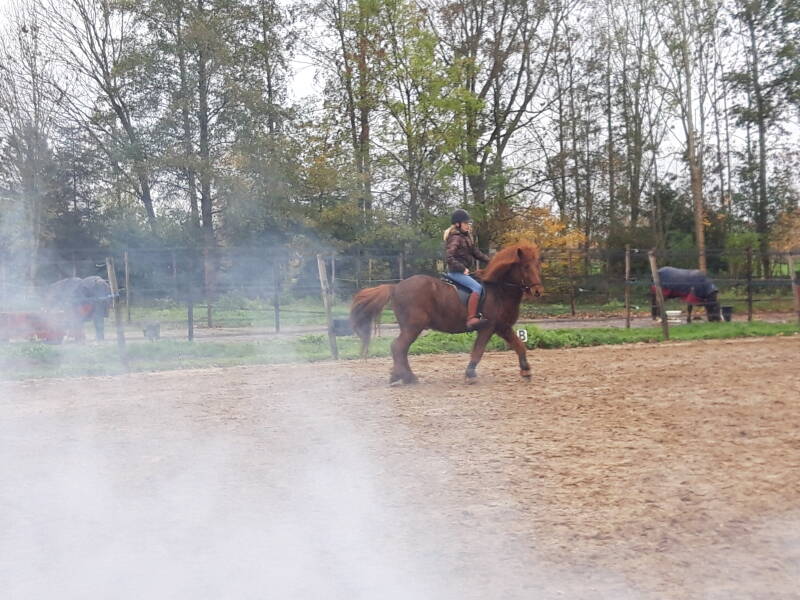 Vandaag was er springles in de nieuwe rijbak. Nouja, niet nieuw, maar de Dubbelland-rijbak heeft deze week groot onderhoud gehad en ligt er weer superstrak bij. Fijn voor de paarden en fijn voor de ruiters.